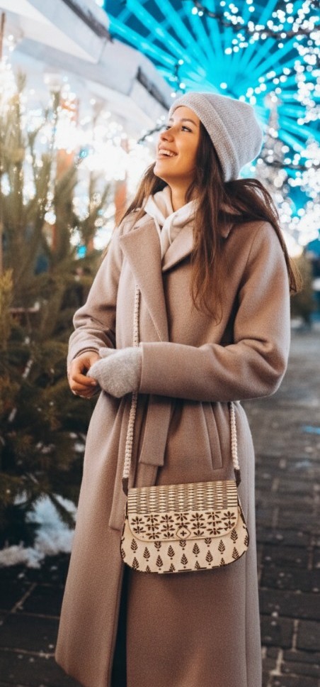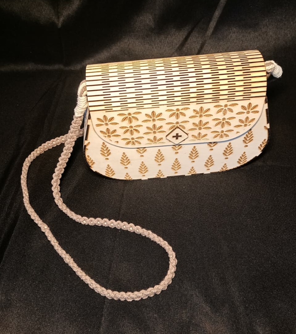 Bist du bereit für einen echten Hingucker? Diese Handtasche ist mehr als nur ein Aufbewahrungsort für deine Habseligkeiten – sie ist ein Statement. Der Korpus aus Holz wird von filigran lasierten Blumen- und Blattmotiven verziert, die dem Design eine elegante und natürliche Tiefe verleihen. Das verspielte, kreuzförmige Schloss ist ein charmantes Detail, das das Gesamtbild perfekt abrundet.